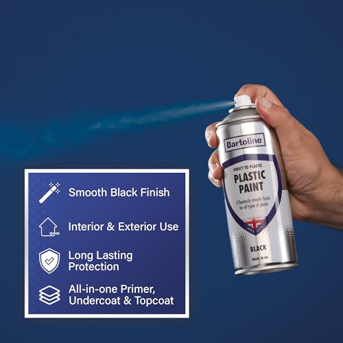 Bartoline Direct to Plastic Paint Black 400ml Gloss Finish All-in-One Spray Paint for Plastic Surfaces No Primer Needed – Durable, Weather-Resistant Finish for Indoor and Outdoor Use
