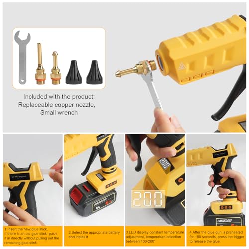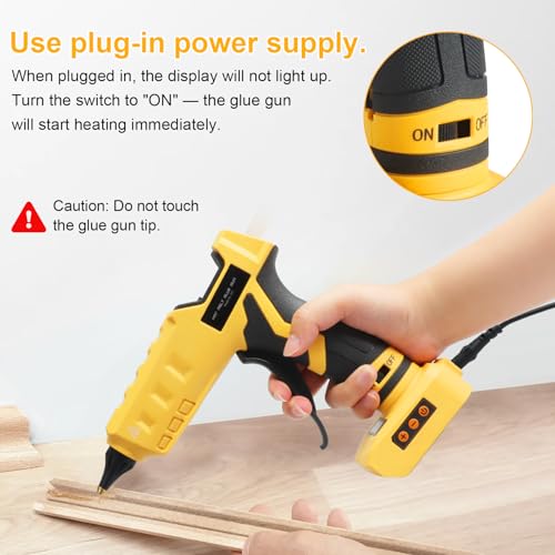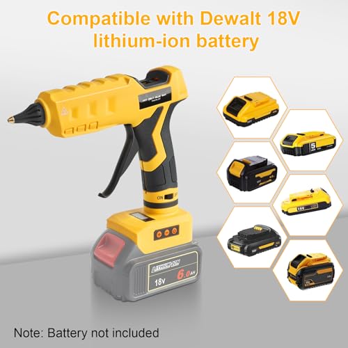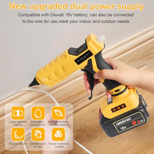 QUPPER 100W Cordless Hot Glue Gun Compatible with Dewalt 18V Battery – Includes 10x11mm Glue Sticks, Drip-Free Nozzle & LED Temperature Display, for DIY, Crafts & Quick Repairs (Battery Not Included)