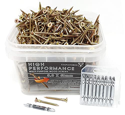 Staplefords Multi Purpose Wood Screws – Boxes of 1000 per Pack – Trade Pack Set of 1000 per Screw Size (Available in 100mm, 70mm, 50mm, 40mm)